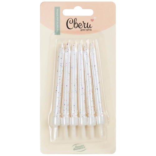 Свечи Яркие искры, Белый, с блестками, 8 см, 6 шт. с держат., 126767