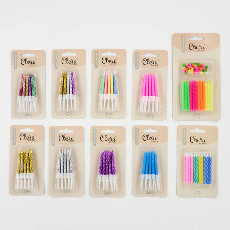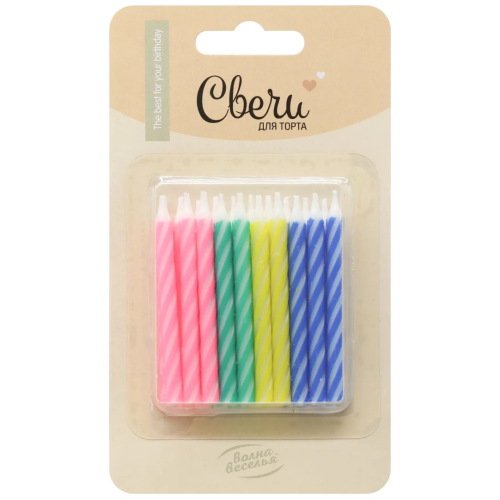 Свечи Яркие полоски, Ассорти, 0,5*6 см, 20 шт., 802915