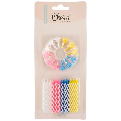 Свечи Яркие полоски, Ассорти, 0,5*6 см, 24 шт. с держат., 132460