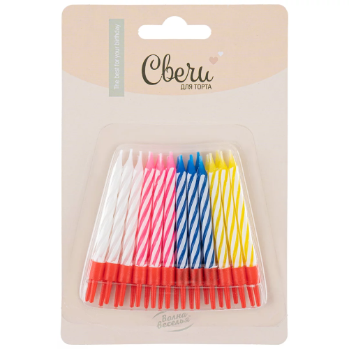 Свечи Яркие полоски, Ассорти, 6 см, 24 шт. с держат., 132463