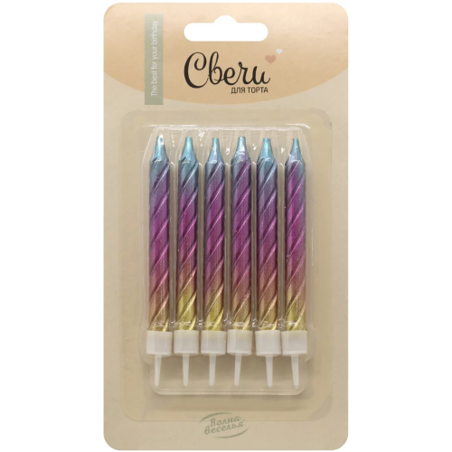 Свечи Яркое сияние, Градиент, 0,7*8 см, 6 шт. с держат., 802945