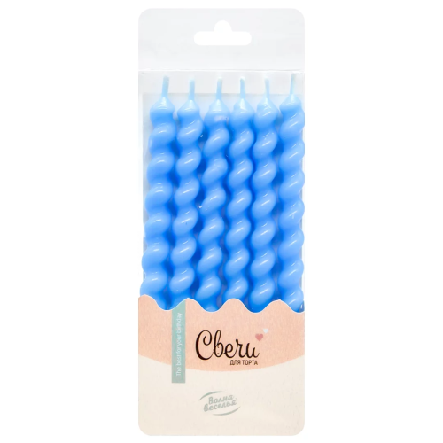 Свечи Зефирная серия, Голубой, Макарунс, 0,8*7,5 + 2,5 см, 6 шт. с держат., 803039