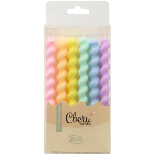 Свечи Зефирная серия, Нежные цвета, Макарунс, 0,8*7,5 + 2,5 см, 6 шт. с держат., 802943