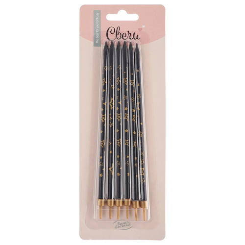 Свечи Золотые звезды, Черный, Металлик, 0,6*15 см, 6 шт. с держат., 627077