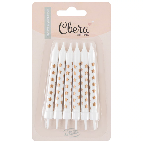 Свечи Золотые звезды, Металлик, 7,5 + 2 см, 6 шт. с держат., 137166