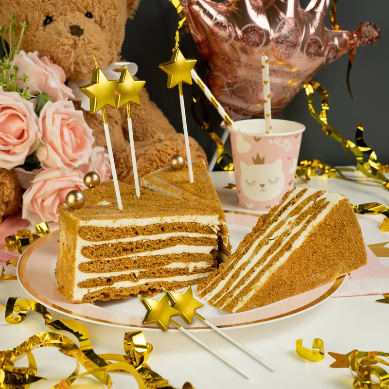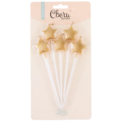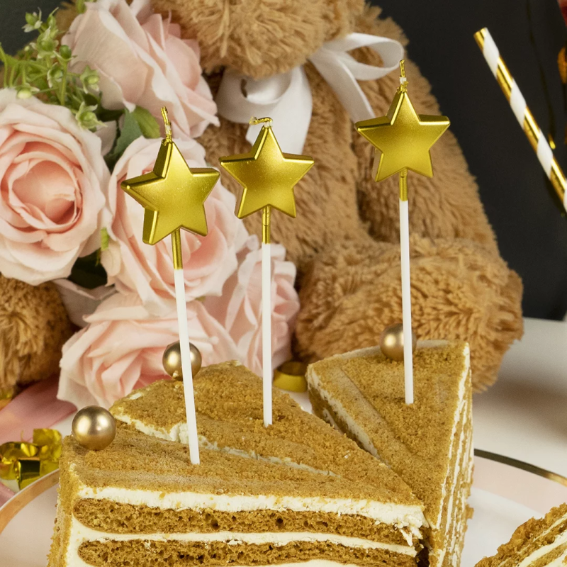 Свечи Звезда, на шпажке, Золото, Металлик, 3*3 + 12 см, 5 шт. с держат., 802951G