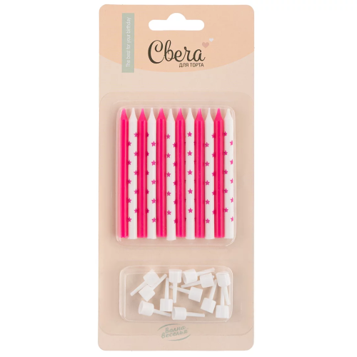 Свечи Звездочки, Розовый микс, 0,5*7,5 см, 12 шт. с держат., 132489