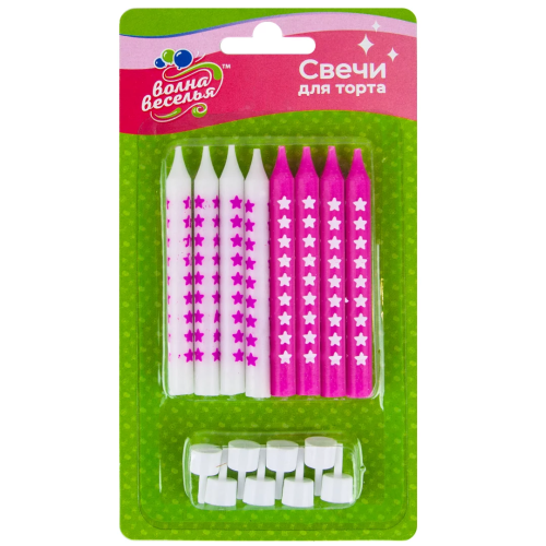 Свечи Звезды Люкс, Белый/Розовый, 0,8*8 см, 8 шт. с держат., 627049P