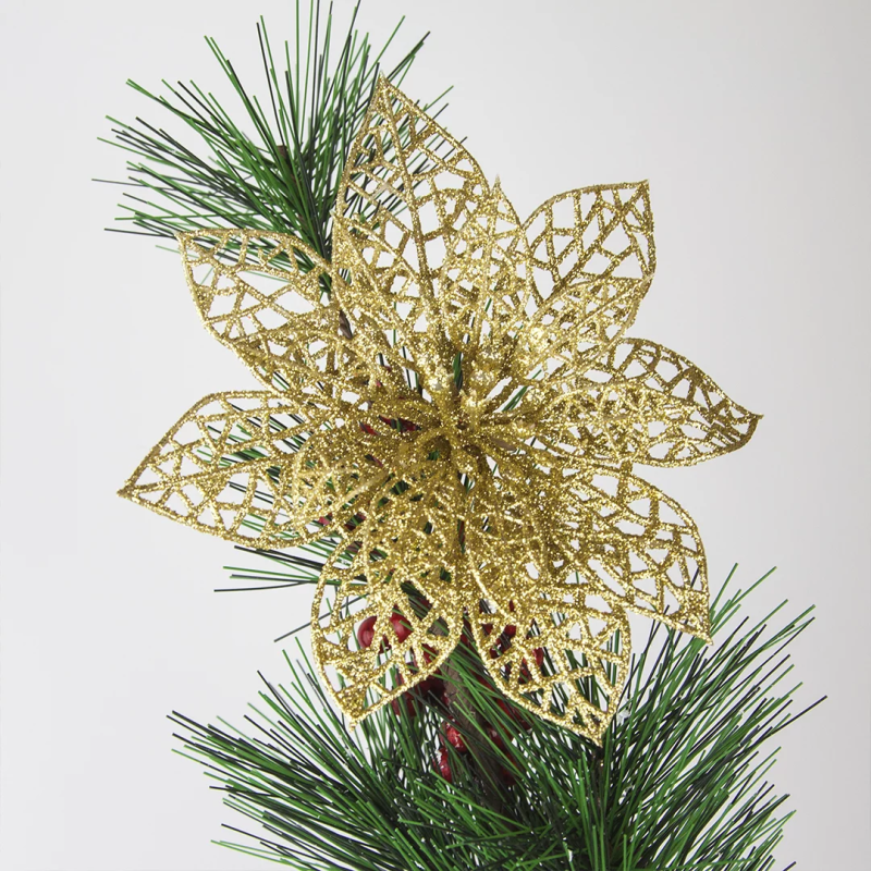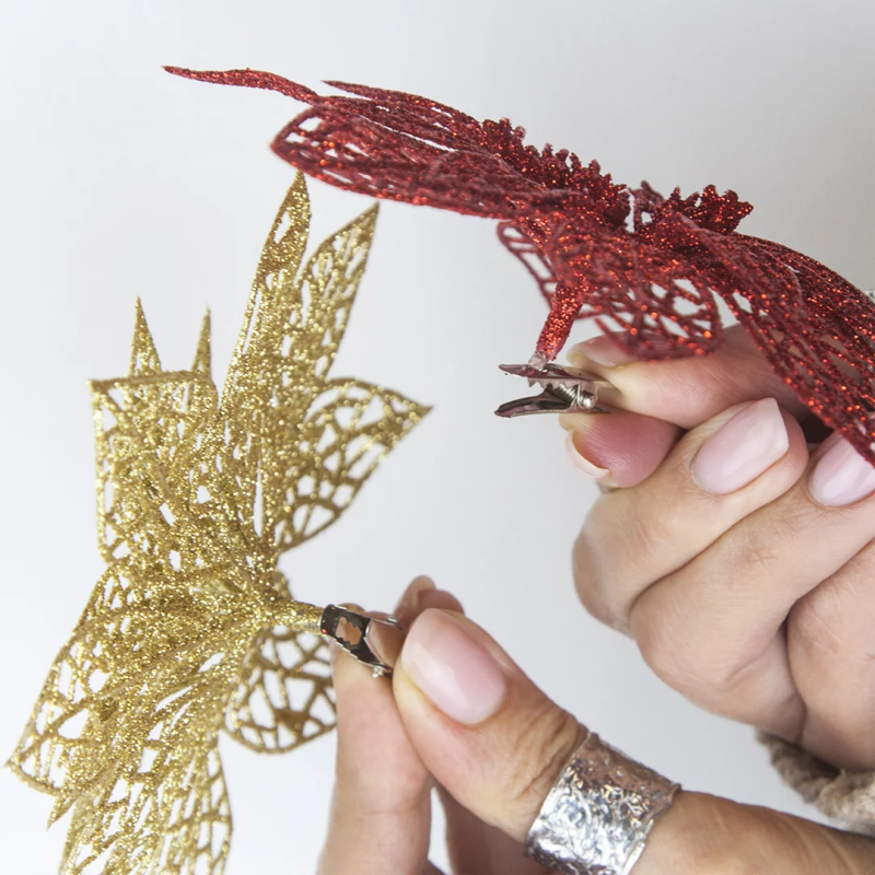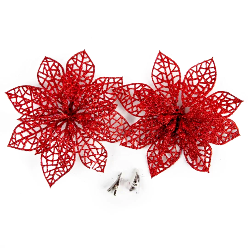 Цветок Пуансеттия, на клипсе, 14 см. Красный, с блестками, 2 шт., 6231004